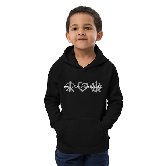 PeaceLoveBasketball Classic Black Kids Eco Hoodie