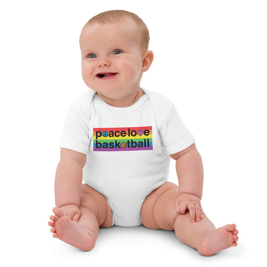 PeaceLoveBasketball Pride White Organic Cotton Baby Bodysuit