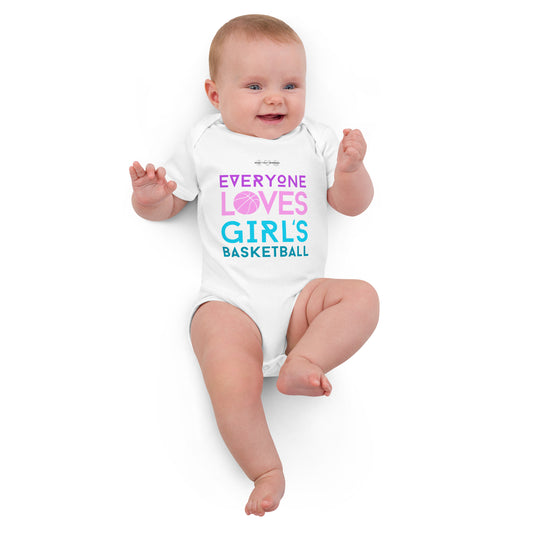 Everyone Loves Girl's Basketball White Organic Cotton Baby Bodysuit