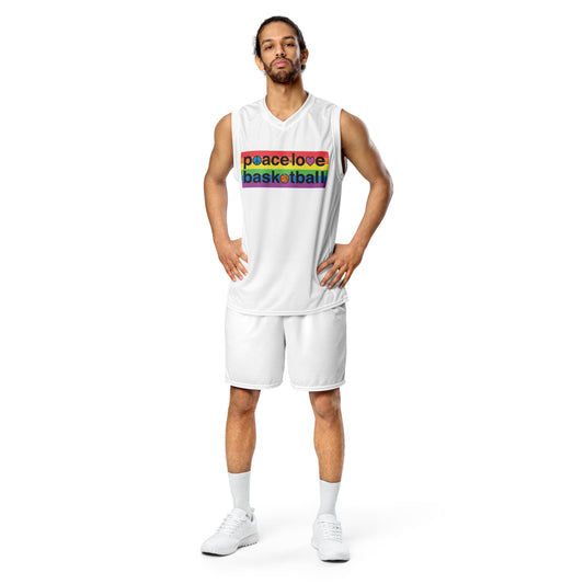 PeaceLoveBasketball Pride Recycled Unisex Basketball Jersey